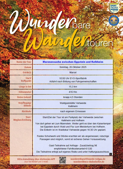 Die Einkehr ist im Waldlokal Viehweide gegen 16:30 Uhr geplant.
